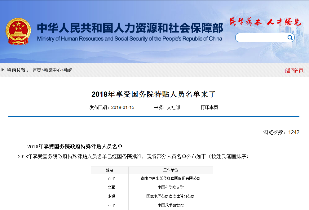 近日,从人力资源和社会保障部获悉,2018年享受国务院政府特殊津贴人员名单已经国务院批准,戴斌院长获享此项津贴。