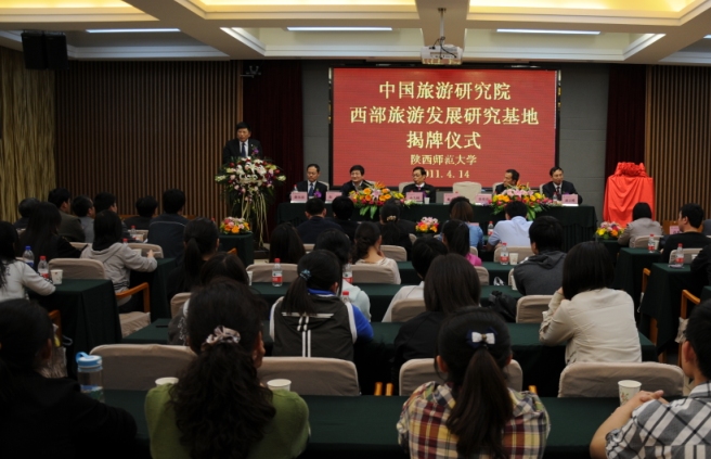 4月14日下午,"中国旅游研究院西部旅游发展研究基地"揭牌仪式在陕西师范大学举行了揭牌仪式。我院戴斌院长、中国工程院孙九林院士、陕西师范大学赵彬、陕西省旅游局陈清明副局长、西安市旅游局康立峰副局长、基地首席专家马耀峰教授以及陕西师范大学旅游与环境学院领导和师生共同参加了揭牌仪式。揭牌仪式由旅游与环境学院院长薛东前教授主持。