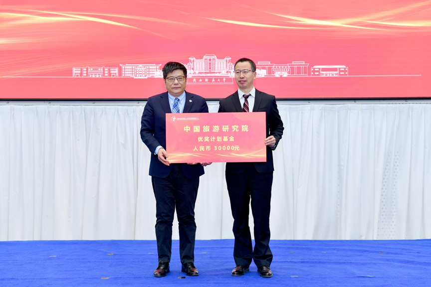 会上,中国旅游研究院院长戴斌向中国旅游研究院西部旅游发展研究基地颁授优奖基金。