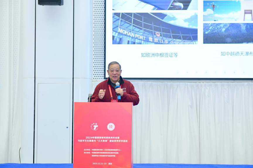 近日,由中国旅游研究院主办、中国旅游研究院西部旅游发展研究基地承办的2024中国旅游研究院机构年会暨习近平文化思想与“三大体系”建设系列学术活动在陕西西安成功举办。本次活动主题为“习近平文化思想与旅游学科体系、学术体系、话语体系建设”。中国旅游研究院院长戴斌、陕西省文化和旅游厅党组书记、厅长高阳、陕西师范大学副校长董治宝等出席会议并讲话。来自我院26家分院基地的首席专家和负责人、6家观察员单位代表,以及学界、业界、地方政府等代表120余人参加了活动。