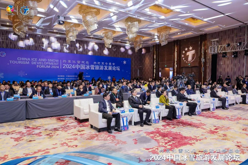 2024年1月5日,“2024中国冰雪旅游发展论坛”在哈尔滨市成功举办。论坛由中国旅游研究院、哈尔滨市人民政府共同主办,哈尔滨市文化广电和旅游局承办。论坛以“共享冰雪欢乐,共迎亚冬盛会”为主题,以领导致辞、主题演讲、报告发布、圆桌论坛等形式展开。论坛发布了《中国冰雪旅游发展报告(2024)》《哈尔滨冰雪旅游发展报告(2024)》。法国驻沈阳总领事罗毅睿、黑龙江省人民政府副省长韩圣健,哈尔滨市委副书记、市长张起翔等出席论坛开幕式,开幕式由哈尔滨市委常委、市委宣传部部长兰峰主持,黑龙江省文化和旅游厅党组书记、厅长何晶,哈尔滨市政府党组成员、一级巡视员方政辉,沈阳市副市长周舟,长春市副市长赵显,北京市延庆区副区长任江浩等参加论坛相关活动。戴斌院长为论坛做主题演讲,题为“哈尔滨的雪花 旅游业的繁花”。本次论坛共有国内冰雪城市代表、冰雪旅游企业、冰雪装备企业、媒体代表等200余名嘉宾出席。