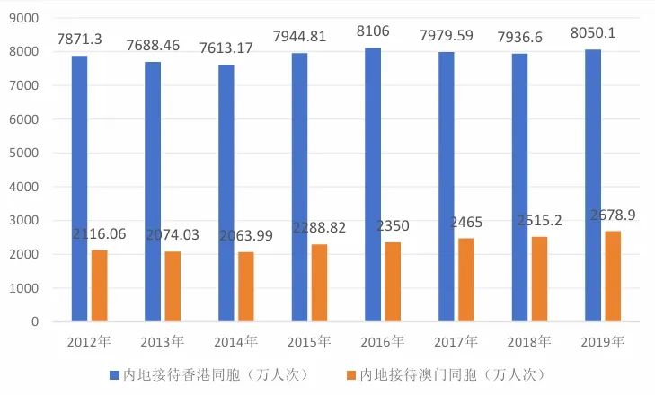图3 内地接待港澳游客数量 (2012-2019)