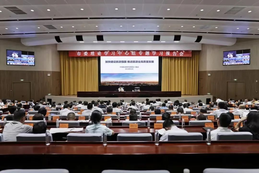 6月11日,苏州市委理论学习中心组举行专题学习报告会,深入学习领会习近平总书记关于旅游发展的一系列重要论述,瞄准“世界旅游目的地城市”建设目标,抢抓发展机遇,坚持以人为本,提升供给水平和服务质量,以文塑旅、以旅彰文,加快推动旅游业实现更高质量发展,为建设旅游强国作出苏州贡献。中国旅游研究院院长戴斌作专题辅导。江苏省委常委、市委书记刘小涛主持学习并讲话。