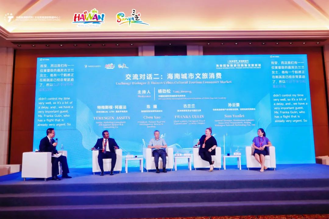 在“海南城市文旅消费”为主题的交流对话环节,杨劲松博士与海南旅游发展研究院院长陈耀、欧洲旅游委员会中国区主席古兰兰(Franka Gulin)、日本交通公社(JTB)高级市场顾问特梅斯根·阿塞法(Temesgen Assefa)、马蜂窝目的地产业创新总经理/目的地研究院院长孙云蕾围绕主题进行了深入探讨。古兰兰(Franka Gulin)表示,国际旅游消费中心的建设首先要知道自己是什么,有什么,随后古兰兰分享了自己对国际旅游消费中心建设的思考。陈耀强调,要研究我们能为入境游客提供什么,不仅要注重硬件的开发,软实力的提升更为重要。特梅斯根·阿塞法(Temesgen Assefa)认为,“海南建设国际旅游消费中心也需要考虑可持续发展问题,技术是解决过度旅游的最好方法?!彼镌评偬岢?,“中国新一代年轻人旅游消费的方式和需求,已经逐渐跟国际趋同、接轨,文旅消费呈现新玩法、新方向,这也影响了入境游客,激发了入境旅游产品创新和目的地建设的灵感,要从获客方式、科技赋”能等方面寻找突破。”
