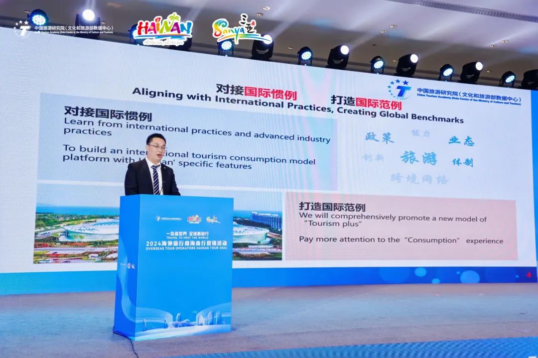 6月25日,由中国旅游研究院、海南省旅游和文化广电体育厅、三亚市人民政府共同主办的“一岛连世界 全球新旅行”·2024海外旅行商海南行营销活动在三亚市举行。包括旅游国际组织、境外旅行商代表、国内旅行商代表、各省市文旅厅(局)代表、海南各市县旅文局代表、旅游行业协会、专家学者和媒体记者等300多人参加了活动。