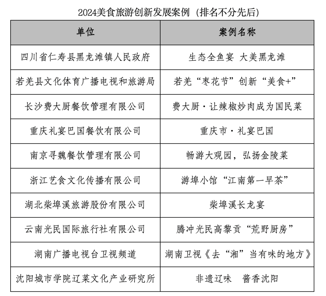 大会发布了“2024美食旅游融合发展案例”与“2024美食旅游创新发展案例”名单。