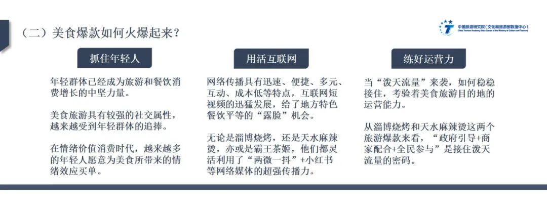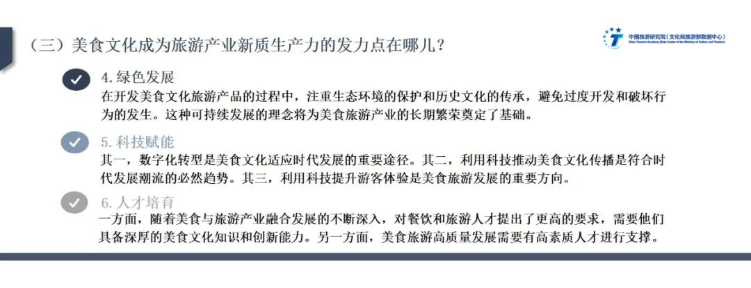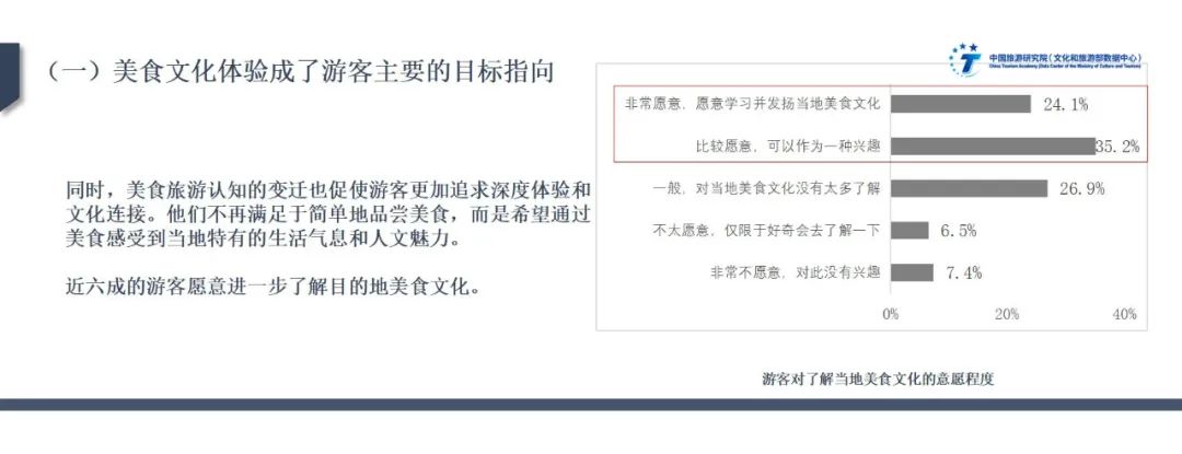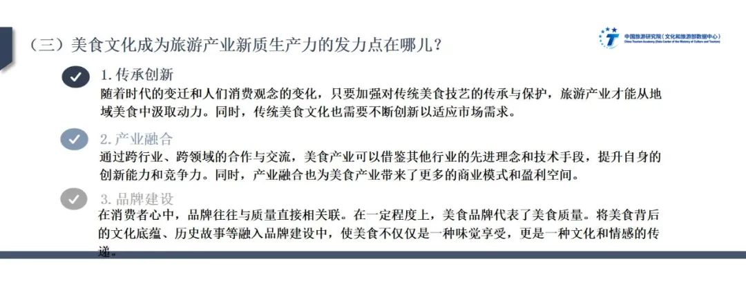 为贯彻落实习近平总书记关于文化和旅游工作重要讲话和指示批示精神,贯彻落实全国旅游发展大会精神,探索“美食+旅游”深度融合创新发展路径,推动中国美食旅游高质量发展,9月21日,由中国旅游研究院、湖南省文化和旅游厅、中共衡阳市委、衡阳市人民政府联合主办,湖南省旅游协会、衡阳市文化旅游广电体育局、衡阳市商务局承办,世界中餐业联合会支持举办的“2024美食旅游发展大会”在湖南省衡阳市举行。中国旅游研究院美食旅游课题组组长、规划与休闲研究所所长吴丰林博士,代表课题组发布了《文化驱动下美食旅游高质量发展实践与路径——2024中国美食旅游发展报告》。报告现场汇报演示稿及主要内容如下: