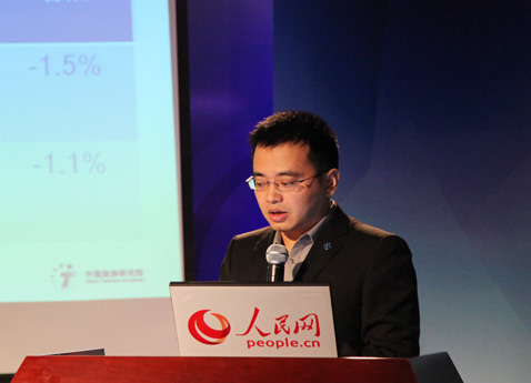 10月10日下午,由中国旅游研究院主办,人民网旅游频道、旅游卫视协办的2014年第三季度旅游经济运行分析暨游客满意度调查报告发布会在人民网演播室举行。中国旅游研究院院长戴斌教授出席发布会并做主旨演讲。中青旅质检合规部总经理李广、京东开放平台事业部生活旅行业务总监鲜文敏、中国旅游研究院产业所所长李仲广副研究员、国家旅游经济实验室负责人唐晓云副研究员等参加了发布会。来自人民日报、新华社、中央电视台、中国国际广播电台、中国日报、经济日报、中国旅游报、中国网、央视网、中国旅游网、搜狐网、凤凰网、中国经济网、蓝海电视、旅行社杂志等媒体机构的代表也参加了发布会。