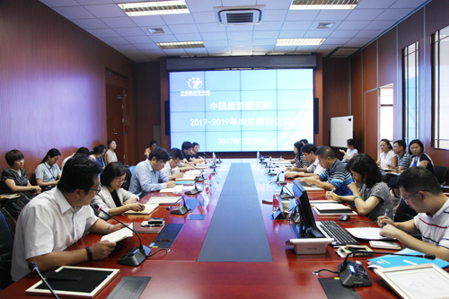7月25日,我院2017-2019年岗位聘任仪式在二层会议室举行。李仲广副院长宣读了中层管理岗位及副高级以上专业技术职务聘任通知,戴斌院长为国家旅游局数据中心总统计师唐晓云等受聘人员颁发了聘任证书。