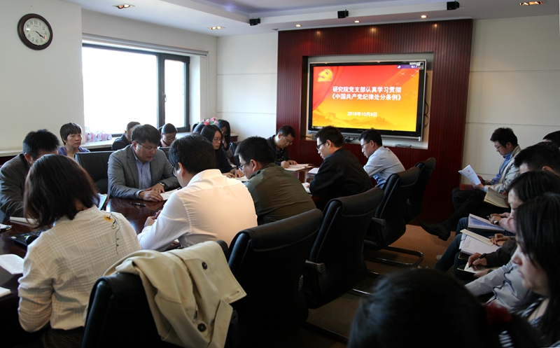10月9日下午,中国旅游研究院党支部在1016会议室召开全体党员会议,认真组织学习《中国共产党纪律处分条例》,会议由戴斌同志主持,院中层以上非党干部、民主党派人士也列席此次会议。