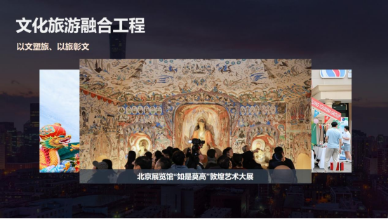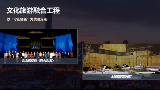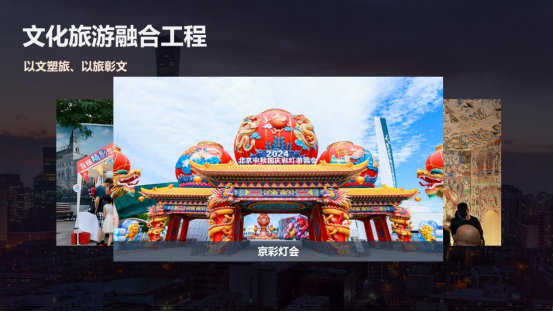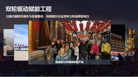 四是双轮驱动赋能工程。集团以国内国际双循环的发展路径,持续提升了企业竞争力和品牌影响力。在国际市场方面,集团在服务保障国际活动的同时,通过首旅集团高端服务体系向世界展示了中国服务。在高水平对外开放的宏观政策指引下,我们还针对入境团队设计了跨区域的文旅项目,串联了中华传统文化体验与现代消费场景,将政策优势转化为企业的发展优势。在国内市场方面,集团持续创新消费场景。在北京中轴线申遗成功后,首旅旅行推出了深度体验产品。最近,我们正在谋划和策展中轴线博物馆,不断做强首店经济,引领环球影城等国际IP。王府井喜悦开设了71家首店店铺,大力发展夜间经济。环球影城城市大道打造一站式餐饮娱乐中心,入选了文旅部国家级夜间文化和旅游消费集聚区。
